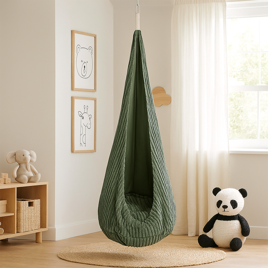 Cocoon-Hängematten für Kinder bieten einen gemütlichen, sensorischen Raum, der Entspannung und Unabhängigkeit...