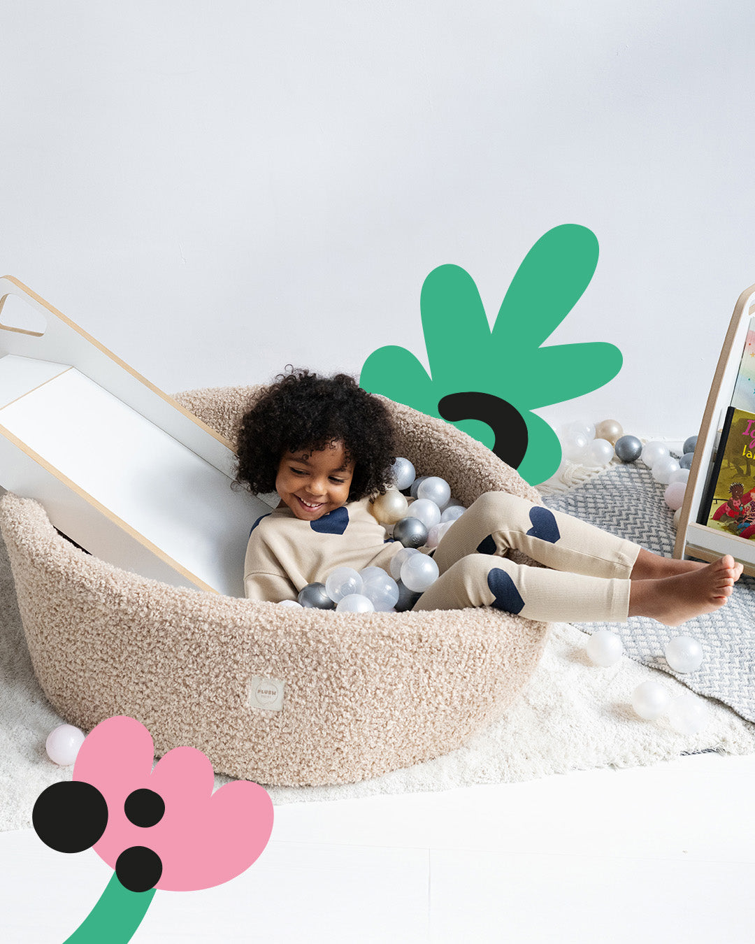 Piscine à balles sèche, douce et sûre, conçue pour les tout-petits de 1,5 à 3 ans. Fabriquée en polaire Teddy Fleece de qualité supérieure, cette piscine de jeu offre un environnement douillet et stimulant qui favorise le développement moteur et sensoriel. L'ensemble comprend 200 balles colorées aux tons doré, nacré et rose clair nacré, pour un jeu à la fois ludique et éducatif. Son élégante teinte crème s'intègre harmonieusement à tous les intérieurs, ce qui en fait un cadeau idéal pour les petits explorateurs.