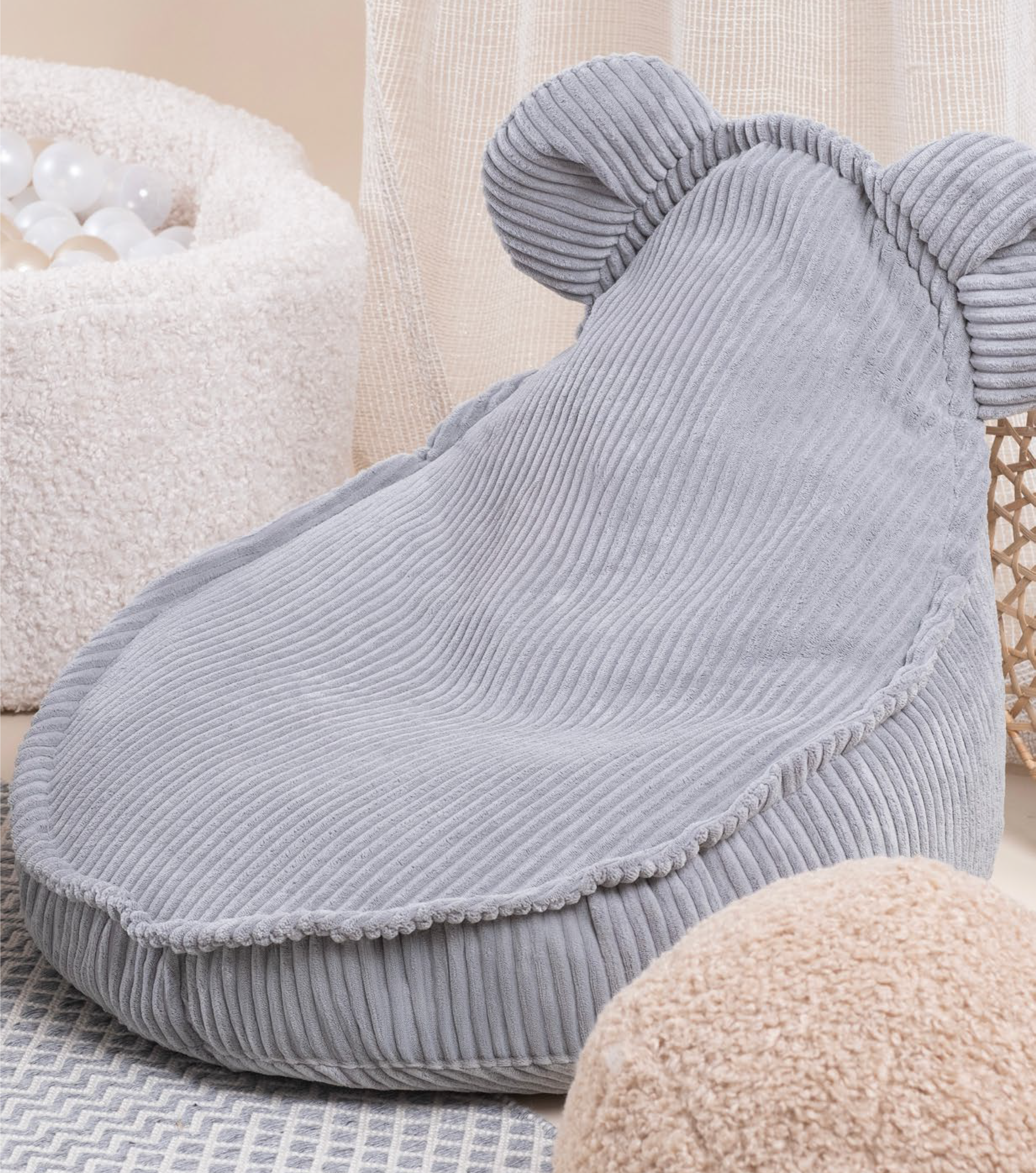 Meet the Huggy Teddy Chair, the perfect companion for children’s adventures. This adorable armchair with ears is a cozy resting place for any child. Made of soft and skin friendly corduroy, it offers comfort for sitting, relaxing, and play. Its cute design with ears adds charm and sparks imagination.