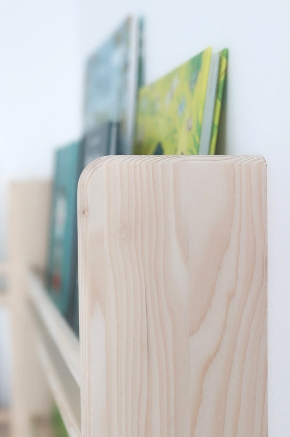 This Montessori inspired wall bookshelf is a smart and stylish way to organize your child’s favorite books and toys. Its slim, space saving profile with only 12 cm depth makes it perfect even for smaller rooms. With open front access, children can easily see and reach their books, encouraging daily reading and independent use. Handmade in Europe, it combines natural aesthetics with functional design.