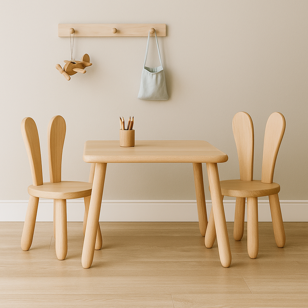 Kids Bunny Chair & Table Set in Solid Beech Wood - Natural