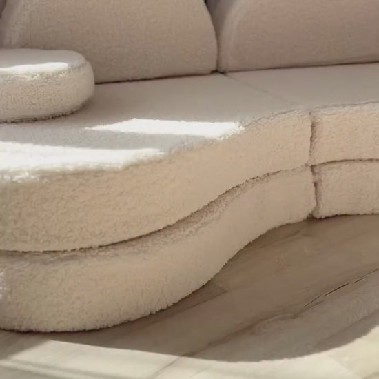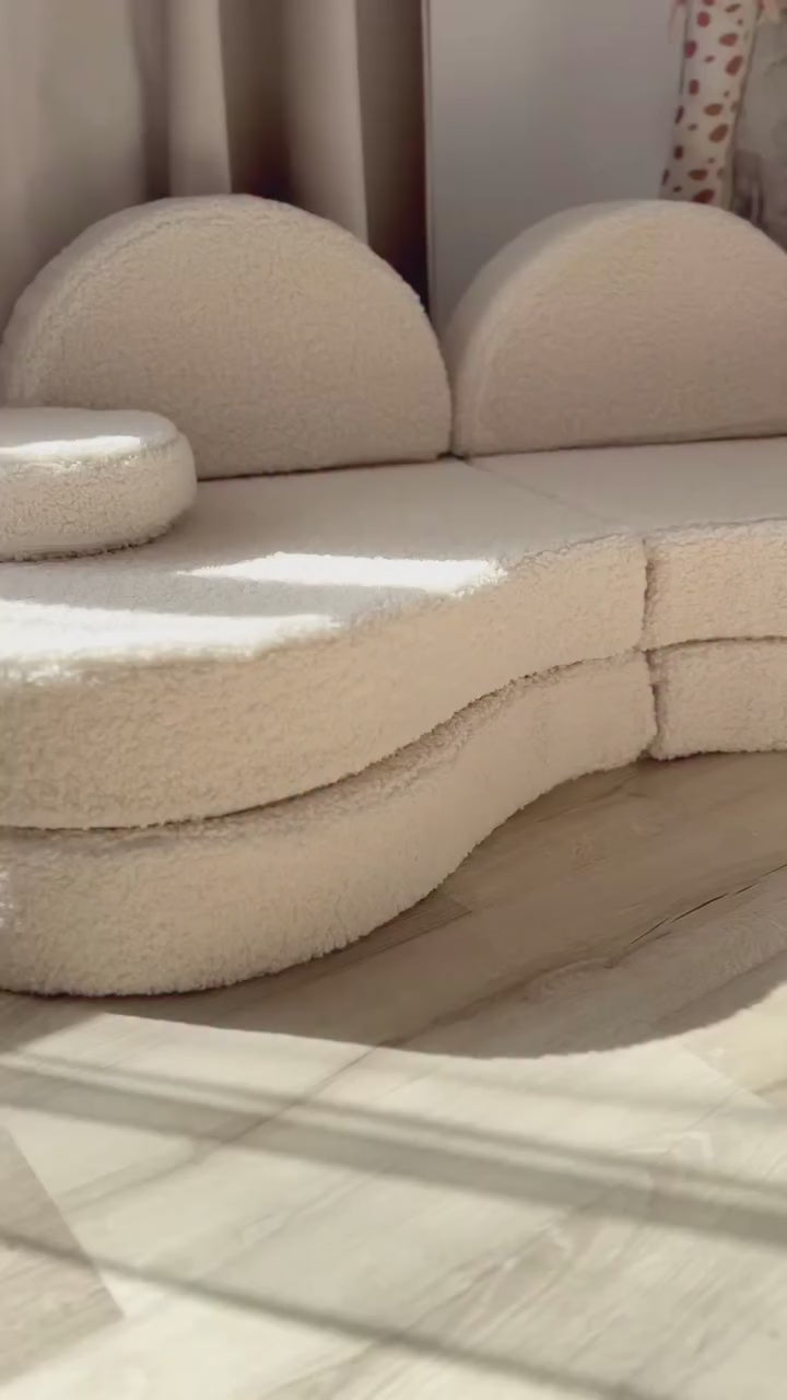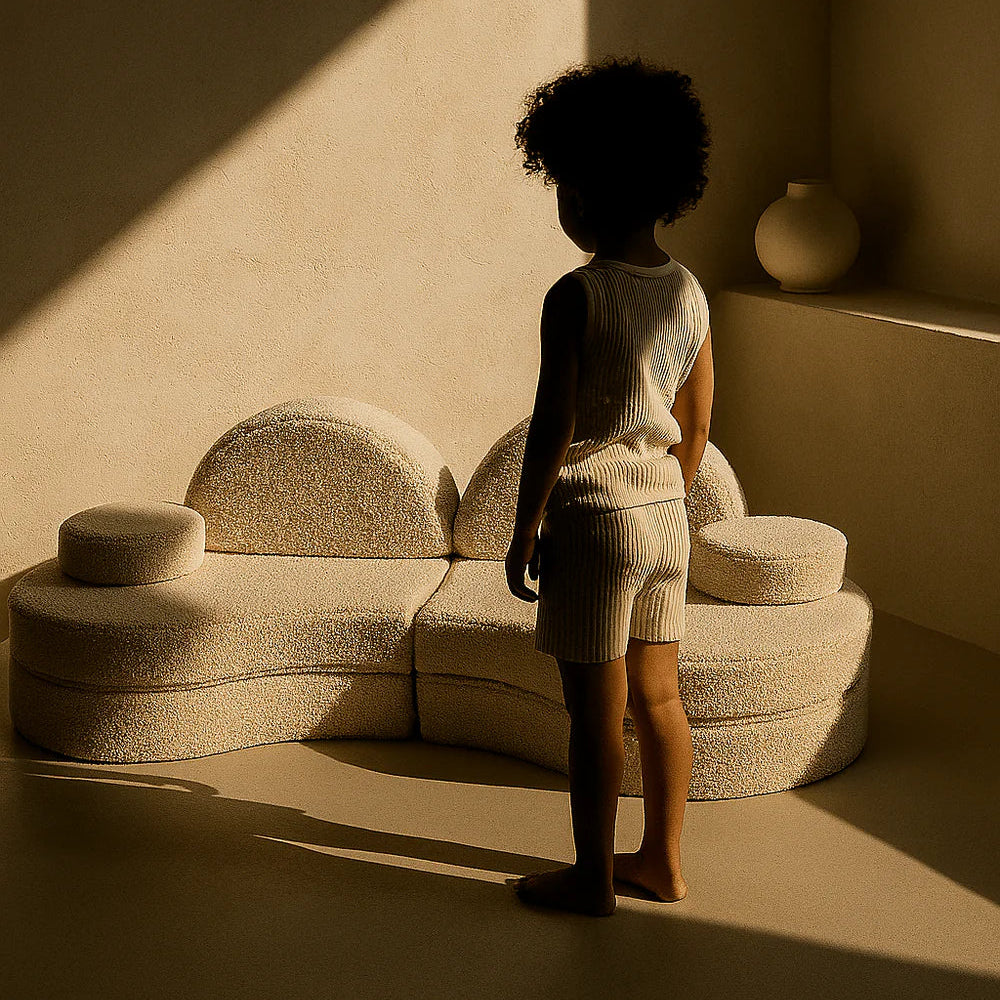 A soft modular sofa that invites movement, creativity, and endless fun.